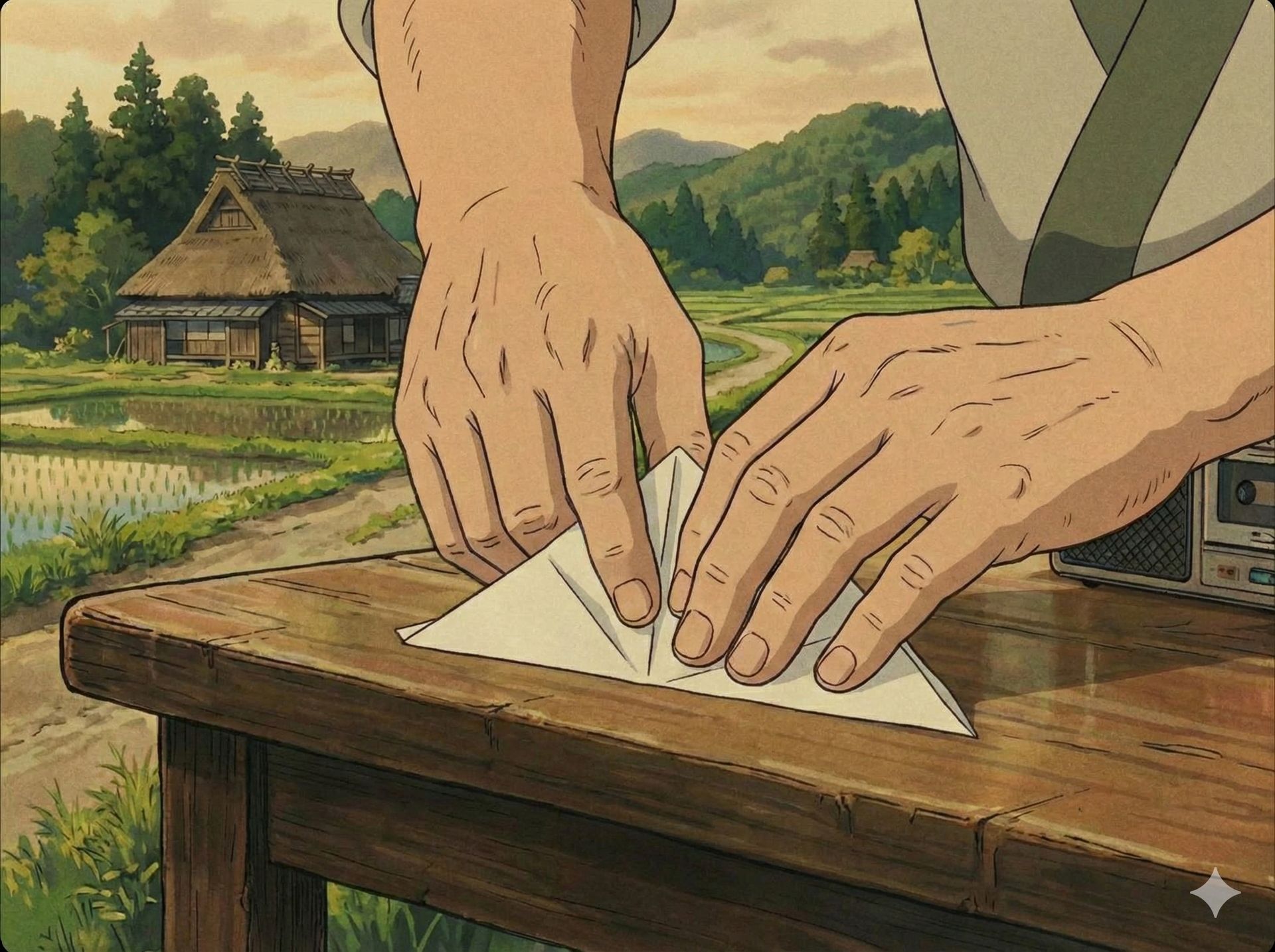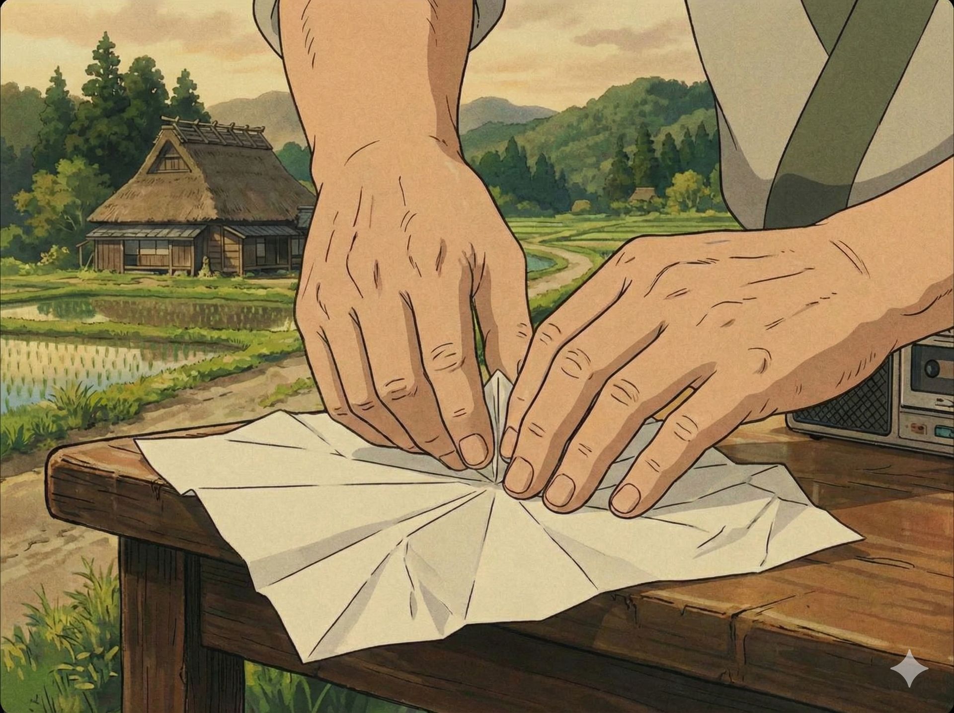 Vem então a Primeira Dobra do Origami